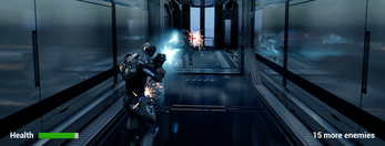 This TPS uses the typical controls of the genre : WASD to move, SPACE to jump, the mouse to look around and of course Left Click to discharge deadly plasma bolts from your futuristic weapon. A little tip : sometimes it's better to run and hide than to take on 3 enemies at once...
